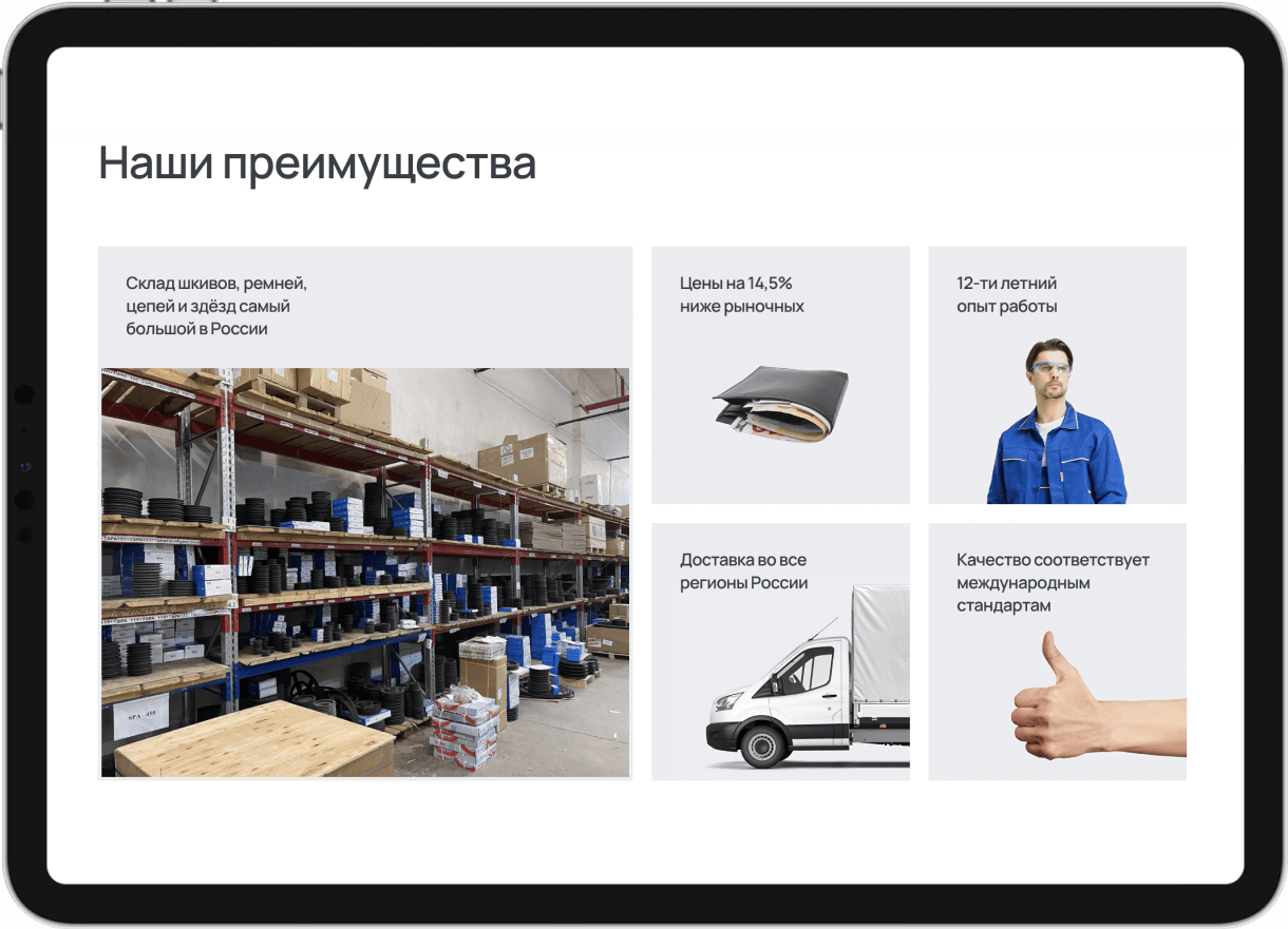 Задача – UX/UI для крупнейшего склада элементов привода в СНГ :